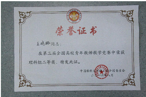 由中国教科文卫体工会全国委员会主办,上海市教育工会、华东师范大学联合承办的第三届全国高校青年教师教学竞赛经过8月29日、30日两天的赛程圆满落下帷幕。共有来自全国32个省(区市)31所高校的93名选手参加了此次竞赛。经过激烈角逐,必一体育·(中国)官方网站教师王晓璐秉着沉着冷静,扎实的专业功底 获得第三届全国高校青年教师教学竞赛理科组二等奖。