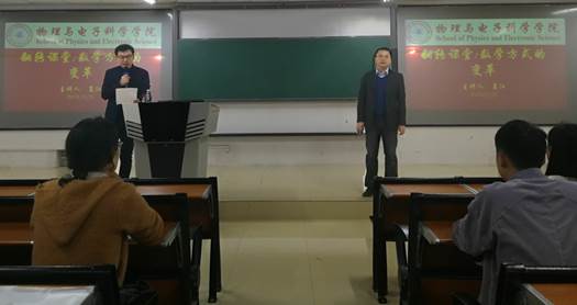 2018年10月25日晚,必一体育·(中国)官方网站在学院楼1522教室举办第四期“名师面对面”讲座——翻转课堂:教学方式的变革。讲座由物电学院副院长肖文君主持,贵阳六中副校长,贵州省教学名师夏江担任此次讲座主讲人。17、18级物理学专业的学生参加了此次讲座。