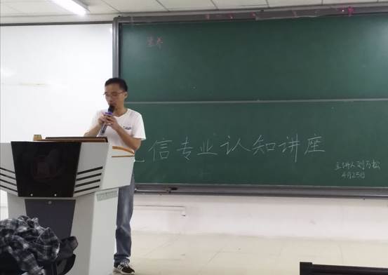 讲座上,刘万松从“课程体系”、“发展方向”、“大学生活”等三个方面向在座的学生讲述了学好电信专业知识的重要性,以及该专业知识所涵盖的应用领域的广泛性。课程体系即专业发展,电信工程方向下的各专业是“你中有我,我中有你”,存在着千丝万缕的联系,要坚定信念学好专业知识;在发展方向方面,刘万松指出电信工程涵盖信号与信息方向、计算机数据库方向和电子设计方向三个方向,同学们应该结合实际情况,选对、选准合适自身的发展方向,抓住机会、努力学好专业知识,提高学习能力。在大学生活讲述版块,刘万松提出“四好”,即“吃好”、“睡好”、“学好”、“玩好”,有好的饮食习惯,好的作息时间,学时认真学,玩时放开玩,拥有乐观向上的心态才能更好的学习和生活。
