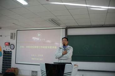 首先,王松峰老师向全体学生详细阐释学校学生管理工作制度。为了依法维护学校正常的教育教学生活秩序,保障学生的身心健康,同时做到依法治校,从严管理,完善管理制度,规范管理行为。他要求同学们严格遵守学校学生管理工作制度,对于违反学校管理工作制度的学生,将对其进行严格处理。他提出,在宿舍应严格服从《学生宿舍管理规定》的有关规定,不得抽烟酗酒,不打麻将、赌博;不使用违规电器,禁止在宿舍内使用明火。引起火警、火灾者除依法承担经济赔偿外,视情节轻重给予严重警告或记过处分。由此造成严重损失和危害者,除承担法律责任外,给予留校察看或开除学籍处分。他还重点指出,必须诚信考试,不得作弊,对于考试违纪及作弊者将按学校违纪及处分规定严格执行,情节严重者,给予开除学籍处分。对于学生违法、违规、违纪,学校可视情节轻重,给予批评教育或纪律处分。纪律处分有以下五种类:1、警告;2、严重警告;3、记过;4、留校察看;5、开除学籍。他告诫同学们遵守各项规章制度,不要触碰管理制度的红线。