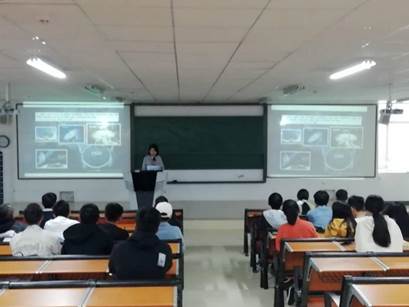 首先,张蕾博士向同学们介绍了中国天眼FAST的建设历程:1994年南仁东先生提出FAST项目构想,到2016 FAST建成,历时22年,耗资11.5亿元。接着,张蕾博士向同学们介绍了FAST科学目标以及近期取得的巨大成果。她指出,FAST建设与运行将在脉冲星、黑洞、宇宙学以及地外文明等方面极大地促进了我国天文事业的发展。她还强调FAST将产生海量的天文观测数据,急需大量具备天文科学素质的天文专业人才从事天文前沿科学研究。