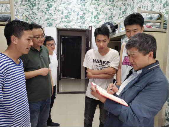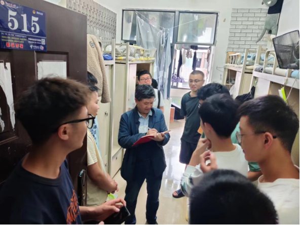 在走访调研过程中,陈世国对每间寝室的安全卫生进行了全面检查,全面了解同学们近期学习和生活状况,要求同学们严格遵守校纪校规,增强预防电信网络诈骗的安全意识,提醒同学们严禁驾乘共享电动车,天气暑热严禁下河游泳,重视寝室消防和用电安全,保持良好寝室卫生,加强体质锻炼并预防各类季节性传染疾病,坚持文明上网传播网络正能量,以积极健康、乐观向上的心态面对学习和生活。