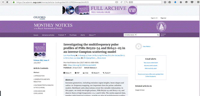 compton scattering model》为题发表在国际一流天文学期刊《英国皇家天文学会月刊》(Monthly Notices of the