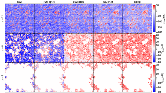 数值模拟得到的不同高能辐射源模型下21厘米信号的空间分布
