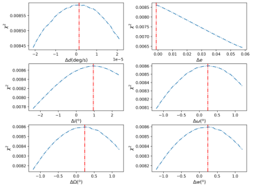 图1 Crab脉冲星的脉冲轮廓“显著性”随着六个轨道参数变化的结果