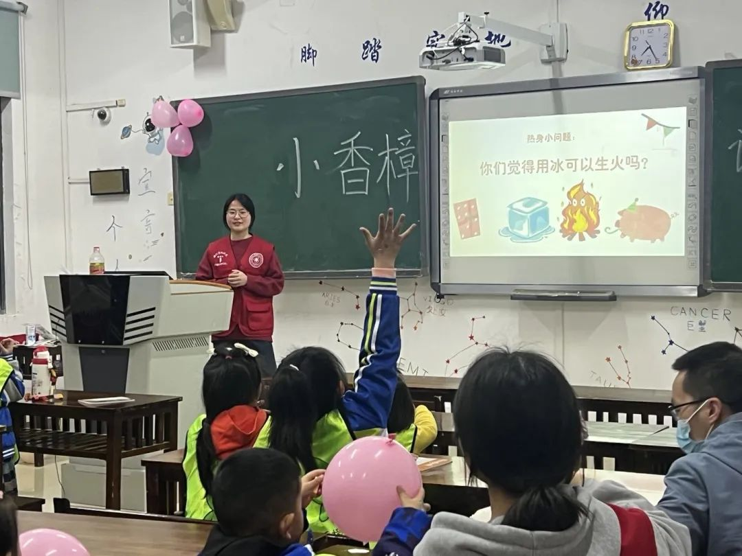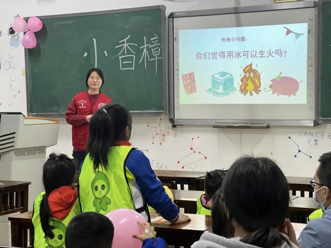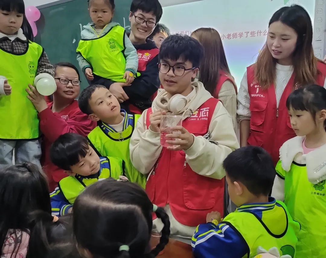 为了让小朋友们更清楚地看到和参与到实验中去,志愿者将他们高高举起,整场实验下来,志愿者们的手臂早已发酸,但心里却是暖暖的。