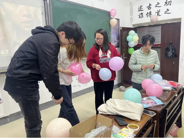 活动开始前一小时,青分会的伙伴们便已到达活动场地开展准备工作:准备桌椅、吹气球、贴横幅......