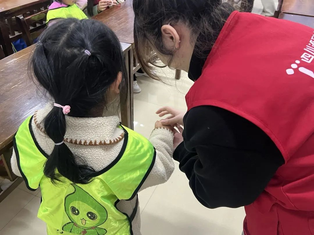 在欢快的打闹声中,我们迎来了活泼可爱的小朋友。志愿者小伙伴们细心温柔地为小朋友穿上小香樟乐园的马甲。