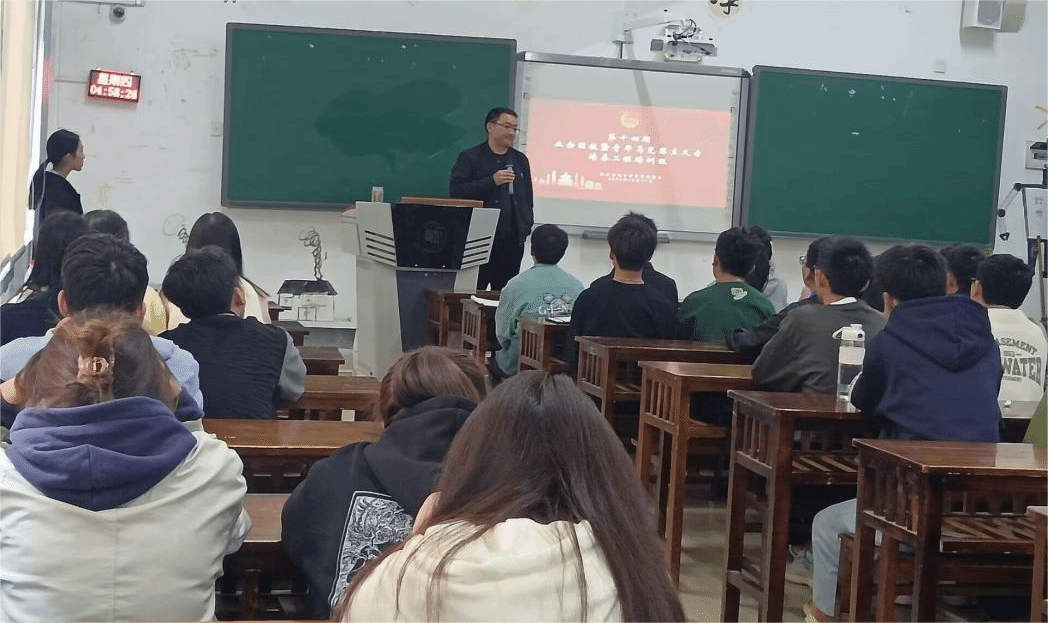 本次题为“奋斗是青春最靓丽的底色,行动是青年最有效的磨砺”党课由学院党委副书记苏醒老师主讲,学院各学生组织、各班的主要学生干部及入党积极分子到场聆听。