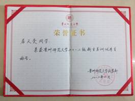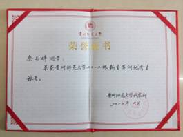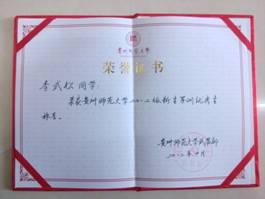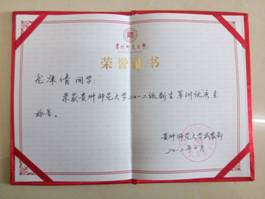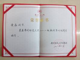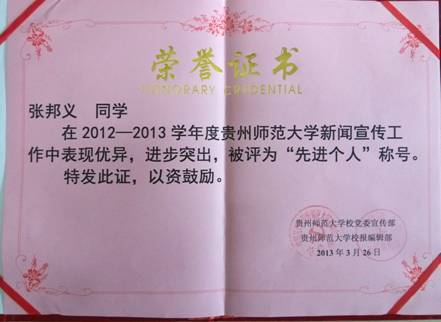 张邦义同学在2012~2013学年度贵州师范大学新闻宣传工作中表现优异,进步突出,被评为“先进个人”称号。
