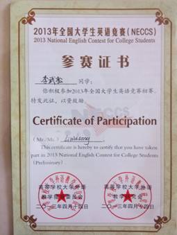 李武松、石祚勇、熊泽春、冯亚丽等33名同学于2013年4月14日上午,参加了2013年全国大学生英语竞赛(NECCS)。