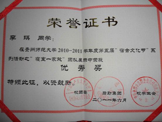 2011年“挑战杯”大学生课外学术科技作品竞赛优秀奖 |