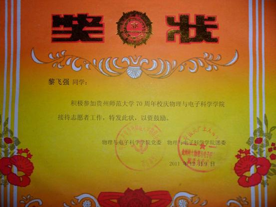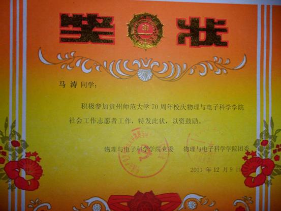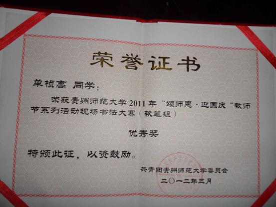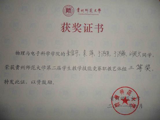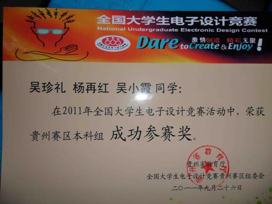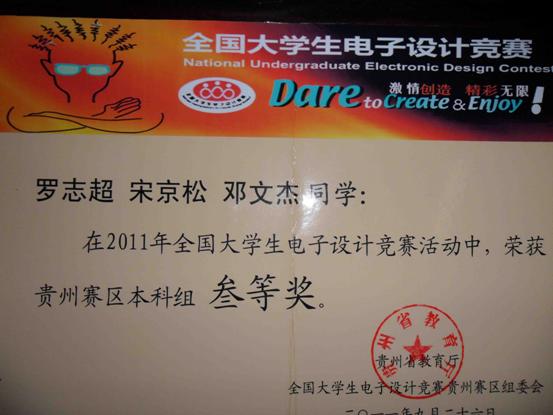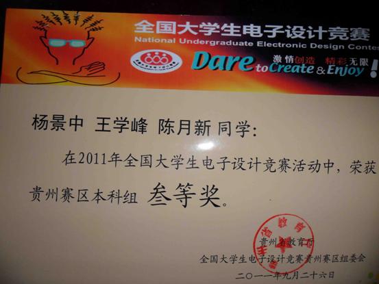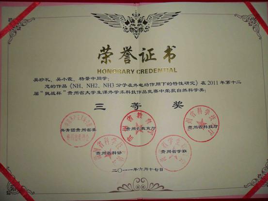2011年“挑战杯”大学生课外学术科技作品竞赛三等奖 |