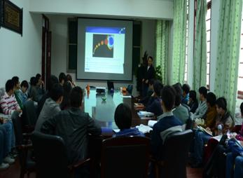 介绍完学科前沿后,田文武研究员还详细的介绍了我国正在贵州建设的世界上最大的500米口径“FAST”射电望远镜的基本情况和它未来所承担的科学任务,并鼓励同学们要把握机遇,积极报考天文天体物理学方面的研究生,投身到天文天体物理学的研究领域,为祖国的发展贡献聪明才智。