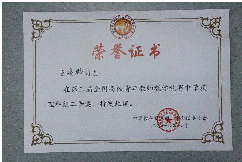 由中国教科文卫体工会全国委员会主办,上海市教育工会、华东师范大学联合承办的第三届全国高校青年教师教学竞赛经过8月29日、30日两天的赛程圆满落下帷幕。共有来自全国32个省(区市)31所高校的93名选手参加了此次竞赛。经过激烈角逐,必一体育·(中国)官方网站教师王晓璐秉着沉着冷静,扎实的专业功底获得第三届全国高校青年教师教学竞赛理科组二等奖。