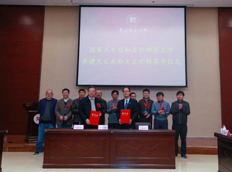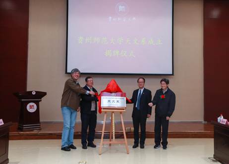 会上,赵刚与肖远平分别代表国家天文台和贵州师范大学签订了共建贵州师范大学天文系和天文学科协议书;李惕碚、高原宁、赵刚、肖远平共同为贵州师范大学天文系揭牌。