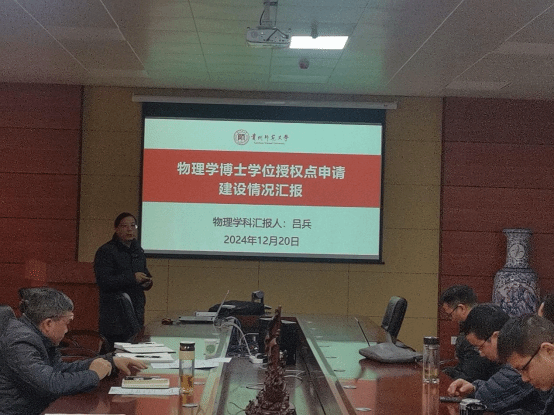 副院长、天文学科负责人董爱军具体介绍了学院目前各学科基本情况,并提出了建设性意见;同时重点从师资队伍、科研平台以及所取得的成绩与国内其他高校对比来介绍了天文学科,并提出了天文学科发展亟需解决的问题。院长肖文君代表电子信息学科分别从下一轮申请电子信息专博情况梳理与总结、电子信息专硕审核评估以及集成电路科学与工程学一级学科硕士学位点申报三个方面进行了详细介绍;物理学学科负责人吕兵重点介绍了物理学学科基本情况,并对照下一轮申报物理学一级学科博士学位点进行了全面剖析,对存在的困难和如何解决困难提出了建议。
