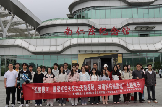 2025年4月23日,学院天文学教工党支部与天文学学生党支部走进贵州平塘,开展“追星揽河,赓续红色天文志;天眼探秘,共铸科技强国魂”主题党日活动,支部师生党员及部分入党积极分子共同参加活动。