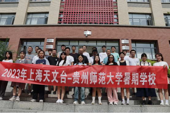 为进一步提升贵州师范大学南仁东班学生的动手能力,了解天文学科发展前沿动态,上海天文台和贵州师范大学共同发起了“上海天文台-贵州师范大学暑期学校”活动。该活动于2023年7月3日至8日在必一体育·(中国)官方网站举办,来自中国科学院上海天文台的郭铨研究员、王鹏研究员,张辉研究员,吴亚军高级工程师、余赟高级工程师,王婧颖副研究员、杨小龙助理研究员,顾琦烙博士后以及刘易恺博士和中国科学院国家天文台的顾俊骅副研究员、云南大学的劳保强博士以及贵州师范大学南仁东班的30余名同学共同参加,贵州师范大学张斌博士负责本次暑期学校的相关工作。